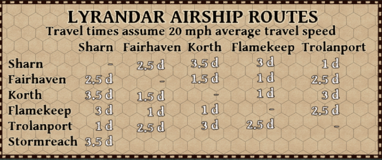 - Average Eberron Airship moves at 20mph or 180ft per round