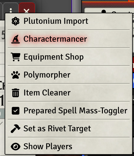 Currently in Foundry we use the “Charactermancer” to build new characters. To access this first create a blank actor in your folder under the actors tab (it can have a temporary name), and then open the character sheet. In the top right of the sheet you should see a “three dot” menu button which has Charactermancer under it: